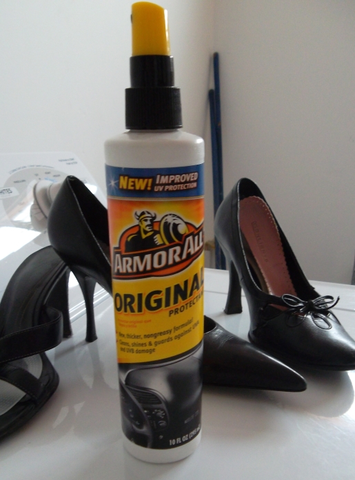 Who would’ve guessed that the easiest shoe polish & protectant lives in the garage with car wax? I began using Armor All to spiff up my heels a few years ago when I found that I couldn’t bring myself to pay for shoe polish that I’d only use once or twice a year.