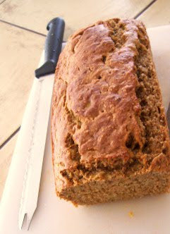 Preheat oven to 350F. Combine all ingredients in a large bowl. Pour into a greased loaf pan and bake in center of oven 45 minutes, or until toothpick inserted removes clean. Cool on wire rack and chow down.